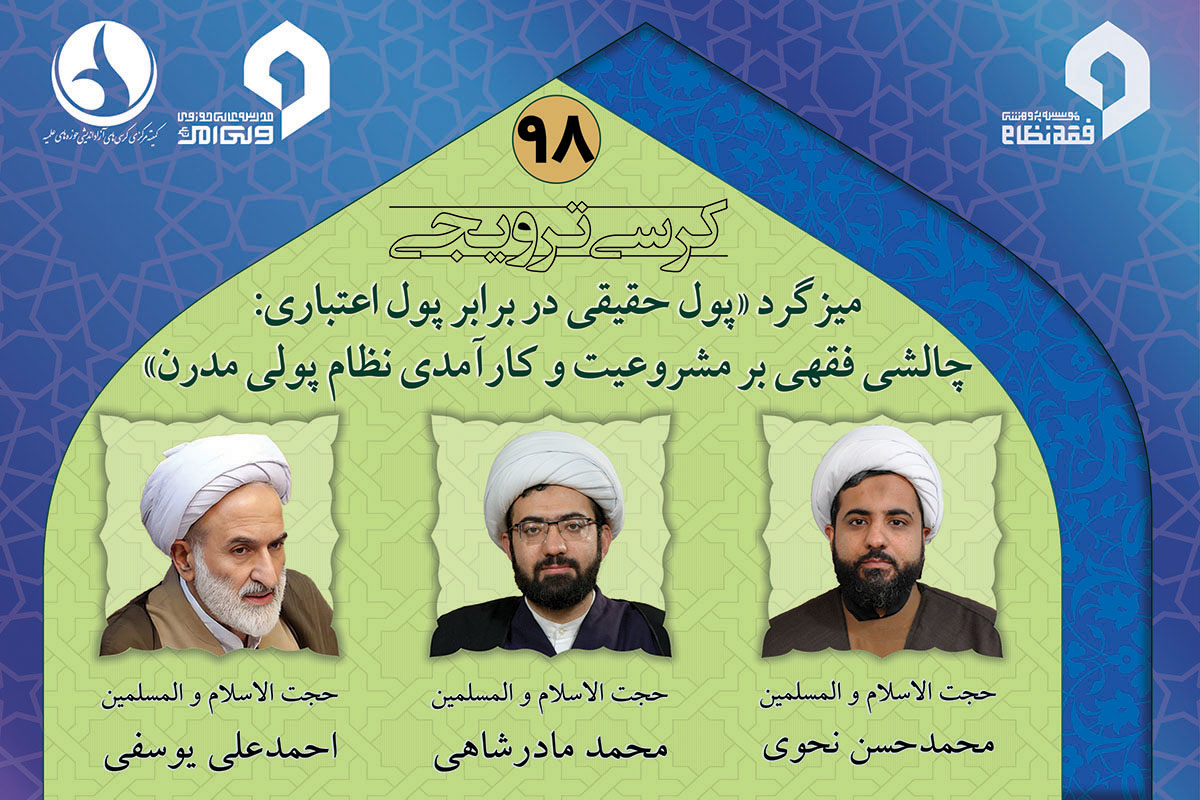 به گزارش خبرنگار پایگاه خبری علوم انسانی مفتاح، نود و هشتمین کرسی از سلسلهکرسیهای پژوهشگاه فقه نظام با موضوع «پول حقیقی در برابر پول اعتباری: چالشی فقهی بر مشروعیت و کارآمدی نظام پولی مدرن» با ارائه حجج اسلام احمد علی یوسفی، محمد مادرشاهی در روز پنجشنبه، ۱۷ مهر در مدرسه عالی حوزوی ولی امر(ع) برگزار برگزار شد؛ محتوای جلسه حول محور پول حقیقی در برابر پول اعتباری بود که امروزه به عنوان چالشی فقهی بر مشروعیت و کارآمدی نظام پولی مدرن مطرح شد؛ در ادامه محتوای جلسه به شرح زیر خواهد بود: